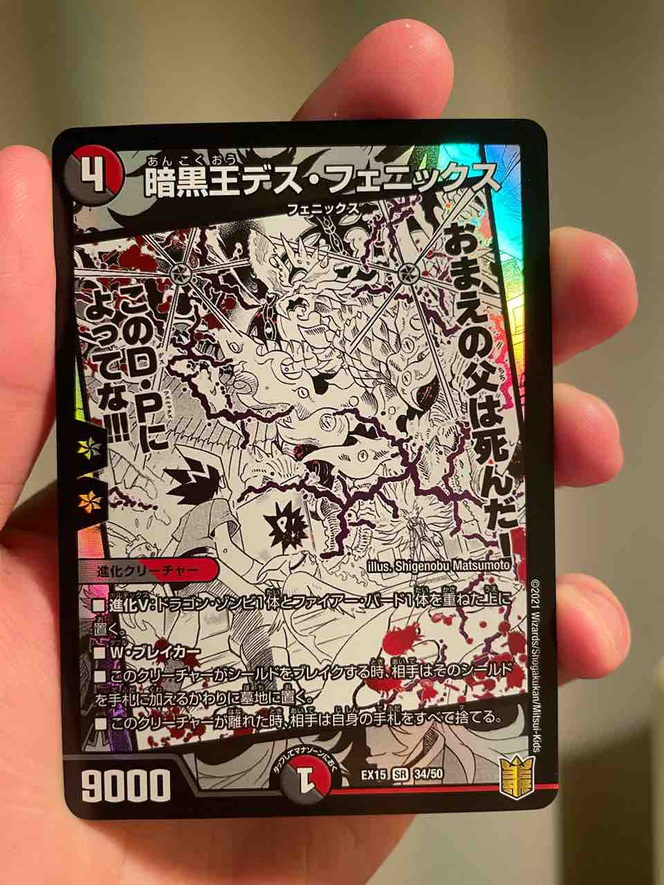 このカードも、漫画において主人公の宿敵であるザキラというキャラクターが『デス・フェニックス』を召喚したシーンのコマをあしらったデザインになっている。